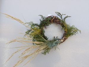 ★農業公園産のさつまいもつると稲でお正月リースを飾っています。